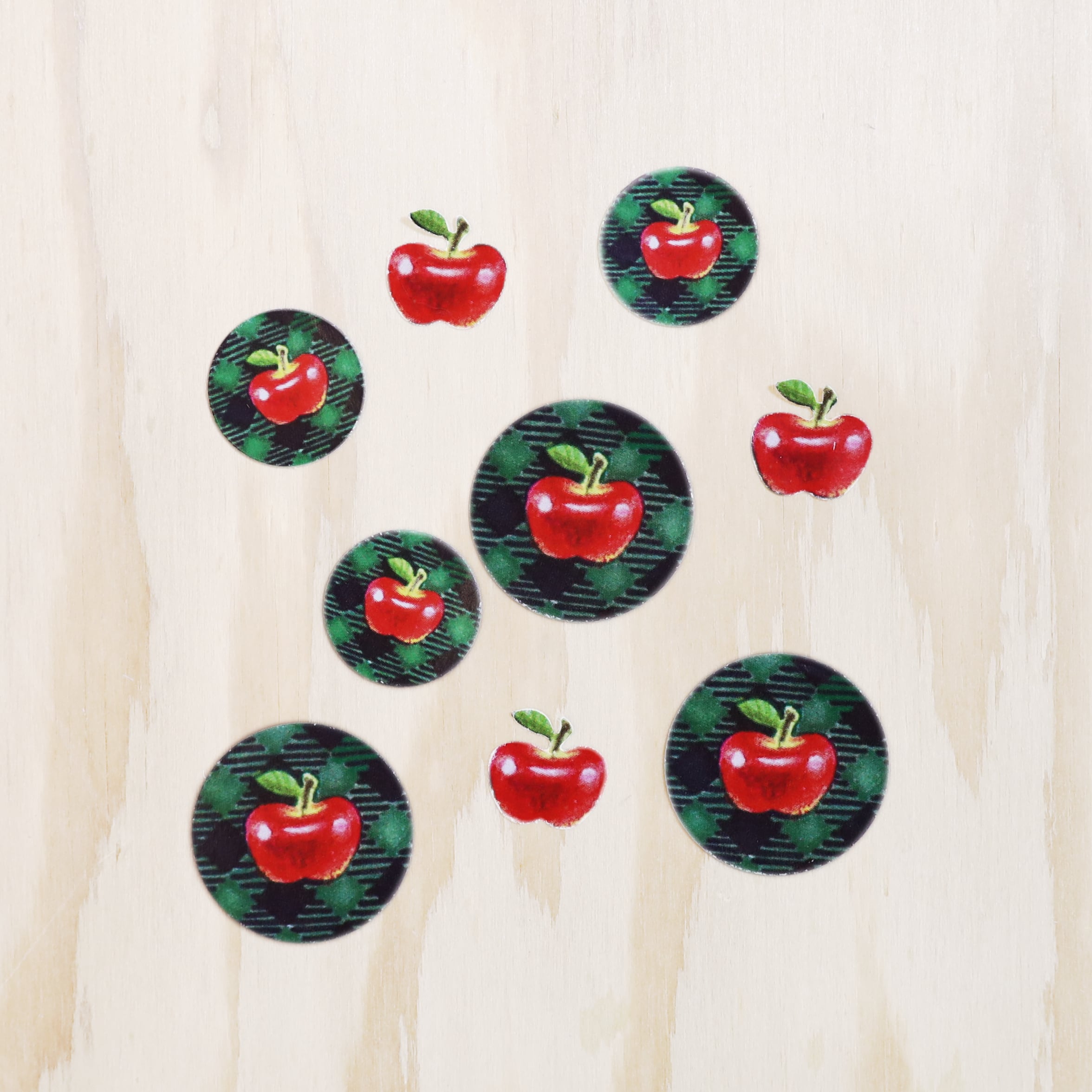 マーカーと色鉛筆でりんごを描いてシールにしました。